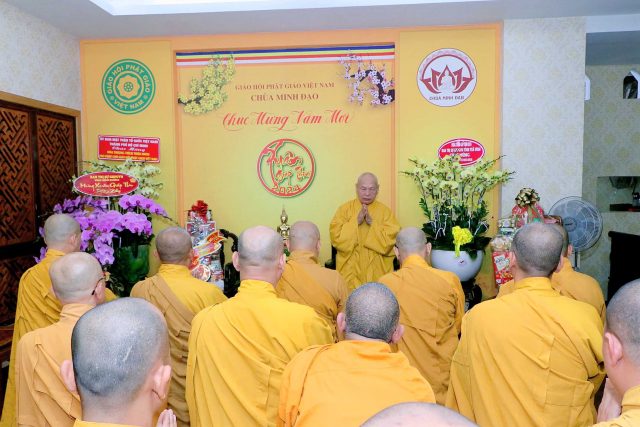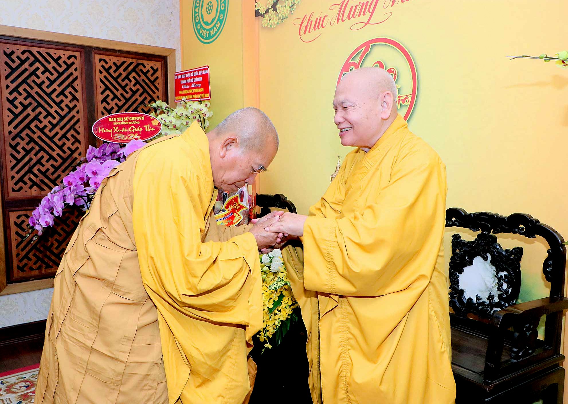 Ban Trị sự Phật giáo tỉnh Bình Dương khánh chúc Trưởng lão Hòa thượng Thích Thiện Nhơn Nhân dịp năm mới 2024 và chuẩn bị đón chào xuân Giáp Thìn, sáng ngày 25/01/2024, tại chùa Minh Đạo (đường Kỳ Đồng, Quận 3, TP.HCM).