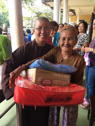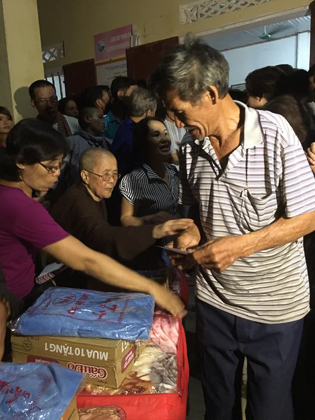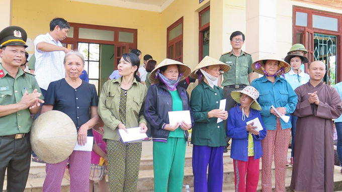 Tiếp sau chuyến công tác cứu trợ lũ lụt ngày 20/10/2016 tại huyện Lệ Thủy, tỉnh Quảng Bình. Vào ngày 28/10/2016, đoàn chùa Phổ Hiền (quận Cẩm Lệ, Tp Đà Nẵng) do NS. Thích Nữ Hạnh Tâm – Trưởng ban kinh tế tài chính GHPGVN Tp Đà Nẵng, Trú trì chùa Phổ Hiền và SC. Thích Nữ Minh Hiền – Phó BTS GHPGVN quận Cẩm Lệ, Tri sự chùa Phổ Hiền hướng dẫn tiếp tục đến thăm và trao tặng 900 suất quà tại Hà Tĩnh và Quảng Trị với tổng trị giá 360 triệu đồng.