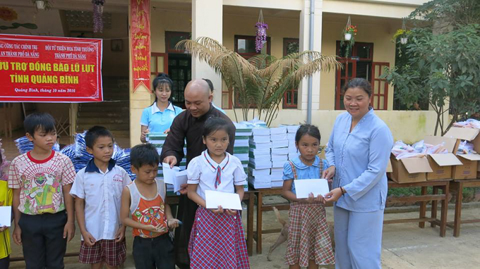 Cũng trong những ngày qua, có rất nhiều chùa cùng các nhóm từ thiện tại Tp Đà Nẵng đã và đang tổ chức nhiều chuyến công tác từ thiện đến với đồng bào vùng lũ. Theo thông tin, hiện nay mưa lớn kéo dài tại Quảng Bình, nước lũ tại một số khu vực tỉnh Quảng Bình đã dâng lên trở lại. Lũ trước chưa khắc phục xong, lũ sau lại tiếp tục. Cuộc sống của bà con ngày càng khó khăn.