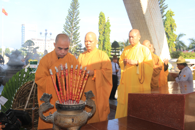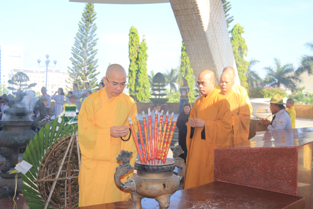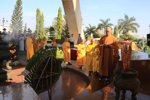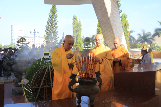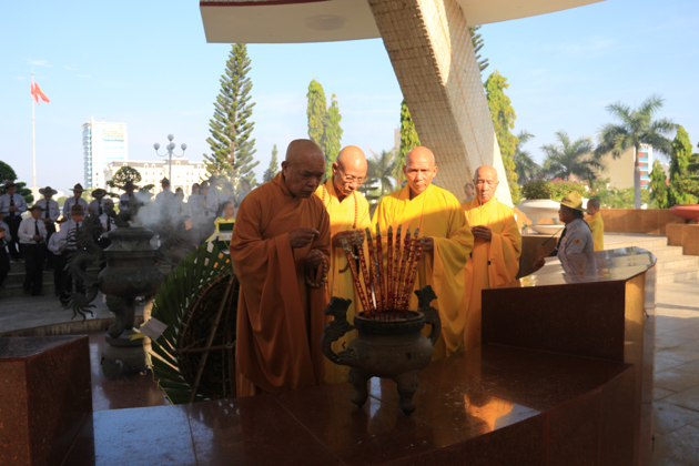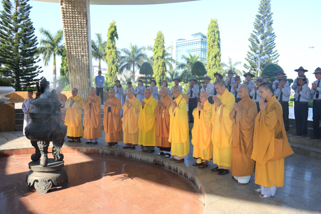 Đoàn BTS GHPGVN Tp Đà Nẵng do HT. Thích Chí Mãn – UV HĐTS GHPGVN, Phó BTS kiêm Trưởng ban Tăng sự GHPGVN Tp Đà Nẵng làm trưởng đoàn cùng Chư Tôn đức BTS GHPGVN Tp Đà Nẵng, Ban hướng dẫn Phân ban GĐPT Đà Nẵng đã đặt vòng hoa mang dòng chữ “ĐỜI ĐỜI NHỚ ƠN CÁC LIỆT SĨ”, dâng hương tưởng nhớ đến công lao của các liệt sĩ đã hy sinh vì đất nước Việt Nam thân yêu.
