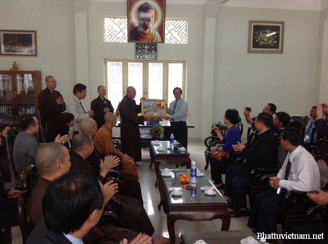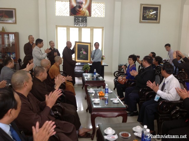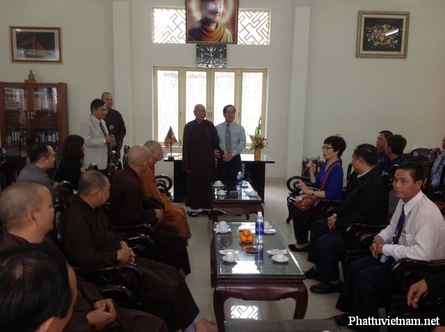 Đón tiếp phái đoàn có sự hiện diện của chư Tôn đức lãnh đạo Phật giáo thành phố: HT Thích Thiện Nguyện – Ủy viên TT HĐTS GHPGVN, Quyền Trưởng BTS GHPGVN Tp. Đà Nẵng, HT. Thích Từ Tánh – UV HĐTS, Phó trưởng BTS kiêm Trưởng ban GDTN GHPGVN Tp. ĐN, HT. Thích Huệ Thường – Phó trưởng BTS GHPGVN Tp. ĐN, TT. Thích Từ Nghiêm, UV dự khuyết HĐTS, Phó Trưởng BTS kiêm Trưởng BHP GHPGVN Tp. ĐN, ĐĐ Thích Thông Đạo – UV HĐTS, Phó Trưởng ban kiêm Chánh Thư ký BTS GHPGVN Tp. ĐN, ĐĐ Thích Chúc Tín – Phó Thư ký kiêm Chánh Văn phòng BTS GHPGVN Tp. ĐN, ĐĐ Thích Pháp Châu, Phó Thư ký kiêm Phó Văn phòng BTS GHPGVN Tp. ĐN, ĐĐ Thích Hạnh Tấn – Trưởng ban Phật giáo Quốc tế GHPGVN Tp. ĐN cùng quý vị cán bộ nhân viên Văn phòng.