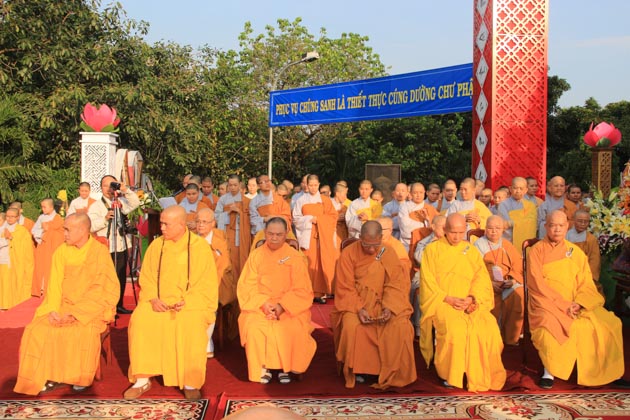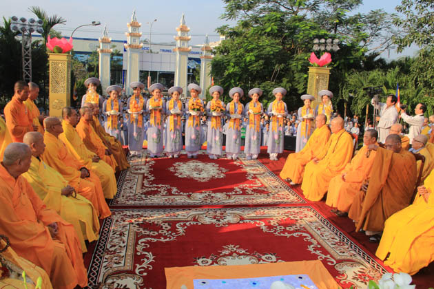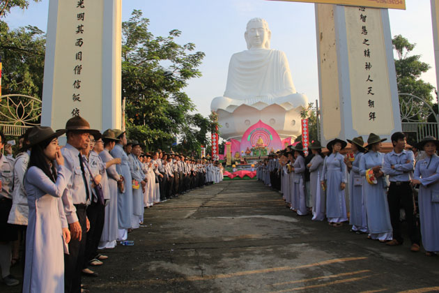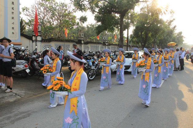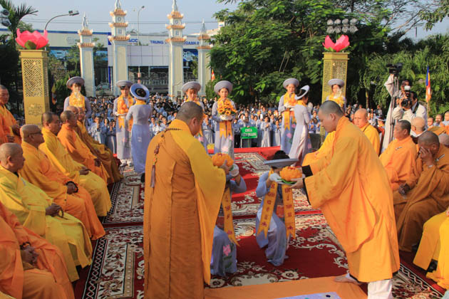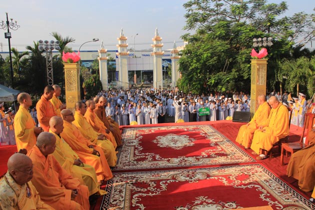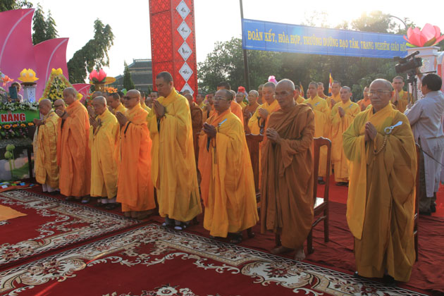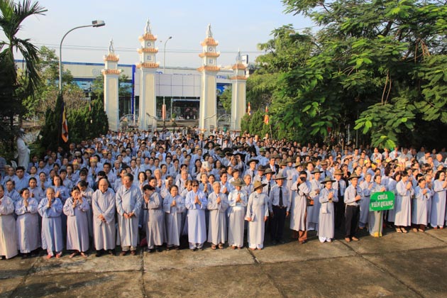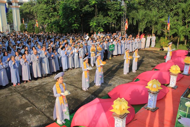 Đông đảo đồng bào Phật tử, huynh trưởng GĐPT các chùa trên địa bàn Tp và gần 1.800 khóa sinh tham dự khóa tu “Quay về bến giác” do BTS GHPGVN quận Liên Chiểu tổ chức tại chùa Quang Minh cũng đã tham dự buổi lễ.