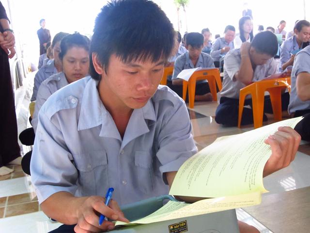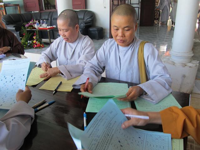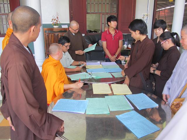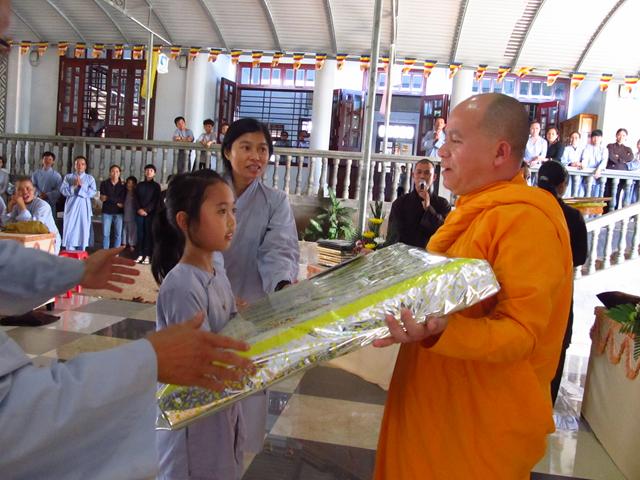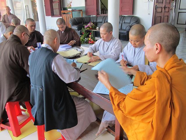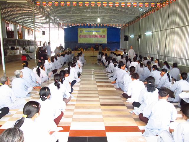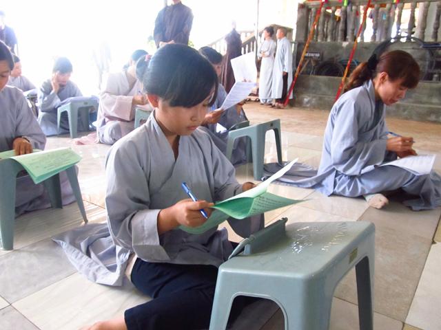 Gần 100 thí sinh tham dự kỳ thi giáo lý đủ mọi lứa tuối. Tất cả đều chăm chú làm bài thi nhằm đạt kết quả tốt nhất nhằm kiểm tra lại kiến thức Phật học của mình và cũng để cúng dường mười phương chư Phật nhân ngày khánh đản .