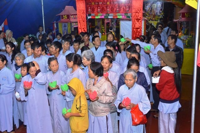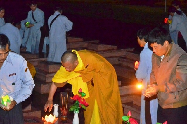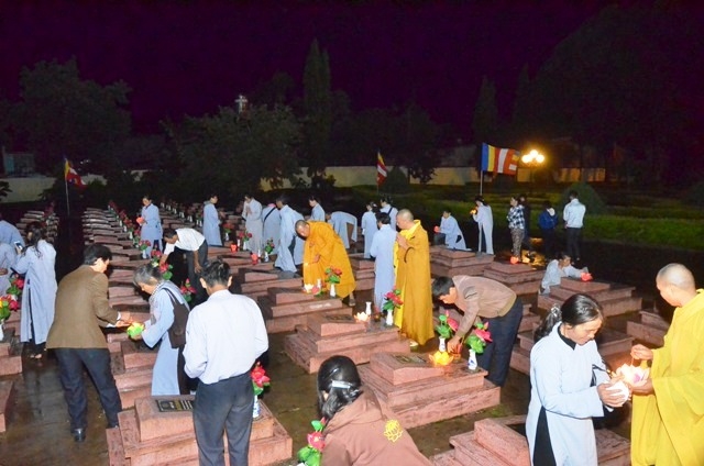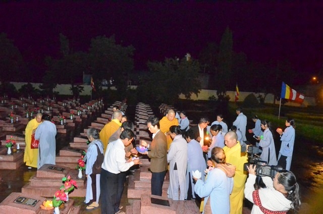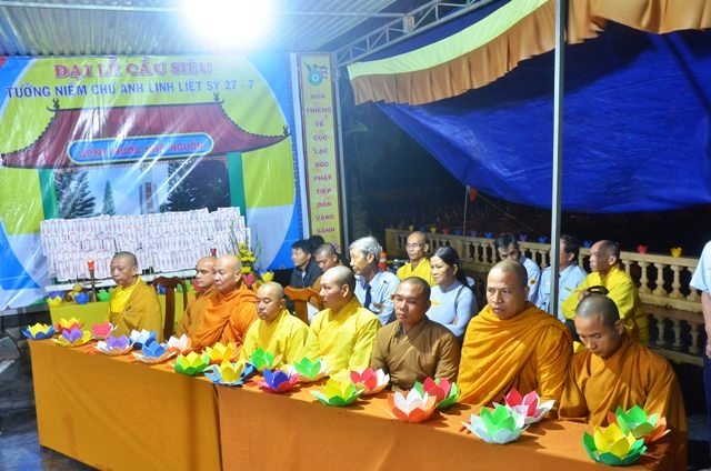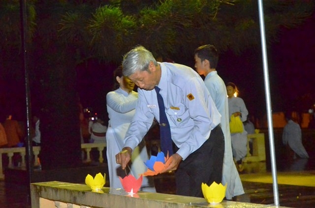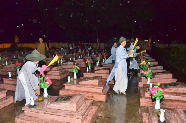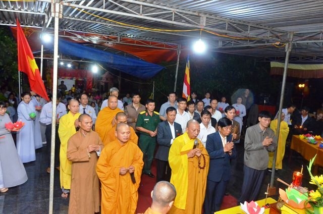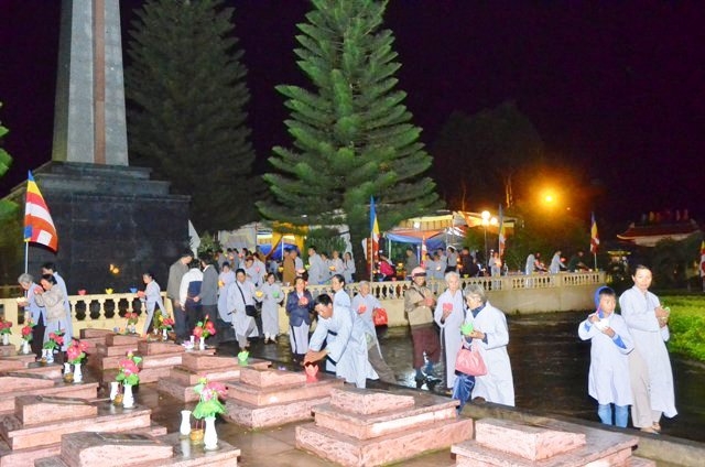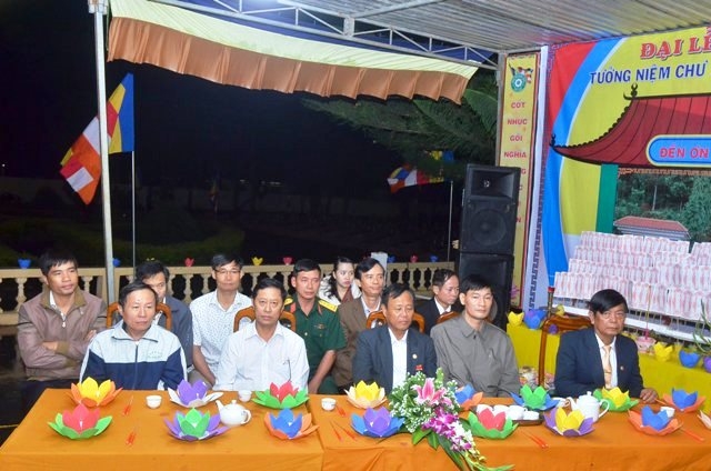Vào lúc 19 giờ 30, chương trình hoa tưởng niệm tri ân Anh hùng liệt sĩ với sự tham dự của Thượng tọa Thích Quảng Tuấn, UV HĐTS, Trưởng BTS GHPGVN tỉnh, Đại đức Thích Nhuận Thân, Trưởng BTS PG huyện cùng chư Tôn thiền đức và bà con Phật tử.