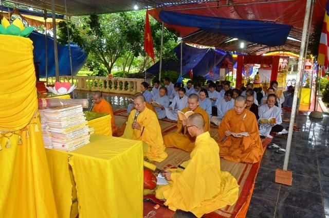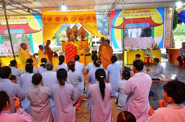 Trong các ngày qua, BTC Đại lễ kỳ siêu đã thiết trí trang nghiêm, sau đó vân tập Phật tử cùng chư Tăng Ni trì tụng Kinh Địa Tạng, Hưng tác thượng phan triệu thỉnh chư Anh linh về đàn tràng.