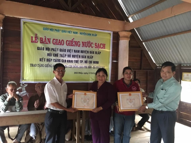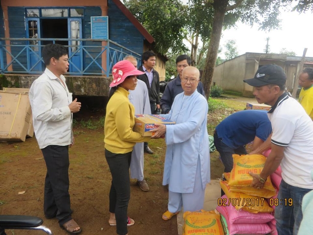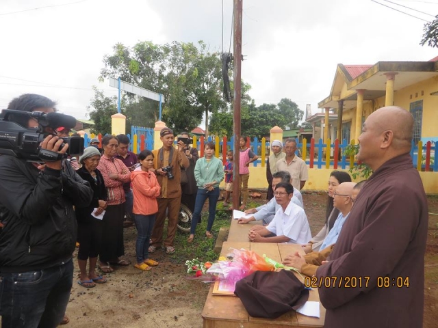 Chứng minh tham dự có: HT. Thích Chơn Tịnh, phó ban từ Thiện báo Giác Ngộ, trụ trì chùa Từ Quang Tp-HCM dẫn đoàn. ĐĐ. Thích Chiếu Ý, phó BTS, Trưởng ban Hoằng Pháp phật giáo tỉnh Đăk Nông, trụ trì chùa Hoa Khai. NS. Thích Nữ Huệ Thiện ( nhà tài trợ chính ), trụ trì chùa Hương Nghiêm, bang California Hoa Kỳ. ĐĐ. Thích Quảng Bình, ủy viên ban Hoằng Pháp phật giáo tỉnh Đăk Nông.