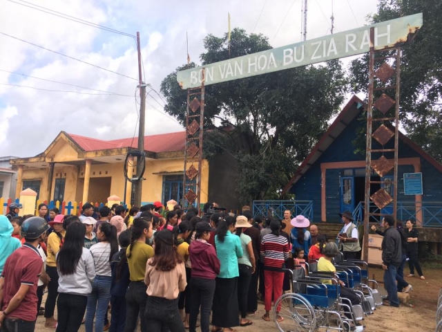 Phía lãnh đạo chính quyền địa phương có ông: Nguyễn Sơn, chủ tịch hội chữ thập đỏ huyện ĐăkR ‘Lấp, ông. Đoàn Huy Cường, phó chủ tịch UBND xã Nghĩa Thắng, ông Điểu Đi, đại diện ban tự quản bon Buôn Za Rá.