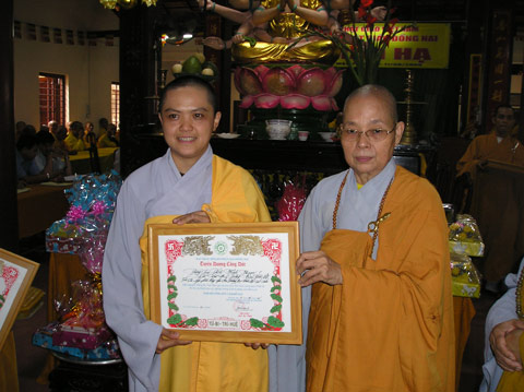 Tại buổi lễ tổng kết mãn hạ sáng nay, BTS Tỉnh hội Phật Đồng Nai đã phát bằng Tuyên dương Công đức cho các cá nhân và tập thể có nhiều đóng góp thiết thực về tài thí và pháp thí trong các trường hạ của tỉnh.