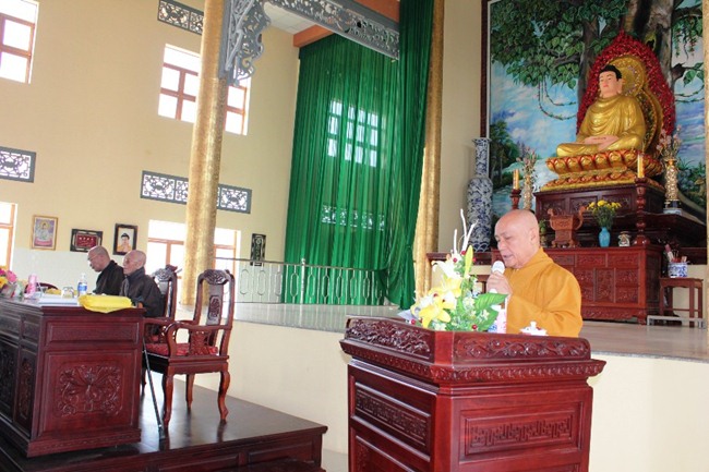 HT. Thích Minh Đáo – Trưởng Ban Trị sự GHPGVN huyện Long Thành đọc tham luận tại hội nghị