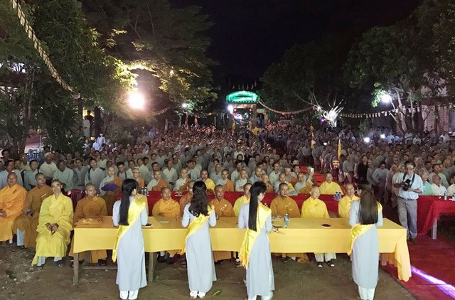 ĐĐ.Thích Như Giải, Trưởng BTC đại lễ đã tuyên đọc Diễn văn Phật đản của Hòa thượng Chủ tịch HĐTS GHPGVN. Diễn văn có đoạn: “Kỷ niệm ngày Đức Phật đản sanh, chúng ta thành kính tri ân Ngài đã vì hạnh phúc của nhân loại mà hiện sanh ra đời. Sức sống vĩ đại của Đức Bổn Sư Thích Ca Mâu Ni chính là hình ảnh Tăng già, đó là đoàn thể của các vị Tỳ kheo, Tỳ kheo Ni, là sự hiện hữu của Đức Phật trên thế gian này. Phật pháp trường tồn là nhờ sự hiện hữu của Tăng già, nhờ vào sức mạnh của trí tuệ và giới luật. Vì vậy, vì sự trường tồn của Tăng già là trách nhiệm của mỗi Tỳ kheo, Tỳ kheo Ni từ thế hệ này đến thế hệ khác. Kính mừng ngày Đức Phật đản sanh, mỗi chúng ta phải tự ý thức vai trò, sứ mạng của mỗi Tỳ kheo trong việc giữ gìn sự hòa hợp, thanh tịnh của Tăng già. Đó chính là đóa hoa tâm thành kính dâng lên Đức Bổn Sư Thích Ca Mâu Ni trong ngày lễ Vesak trọng đại này”.