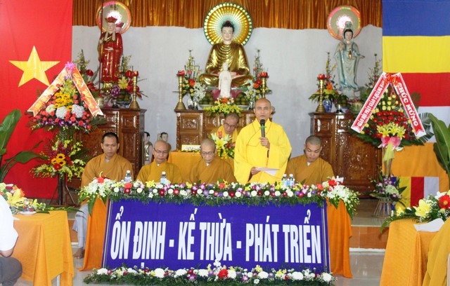 ĐĐ.Thích Nhuận Tánh, Phó BTS PG huyện báo cáo tổng kết công tác Phật sự nhiệm kỳ II (2011-2016) và trình bày phương hướng hoạt động Phật sự nhiệm kỳ III (2016-2021).