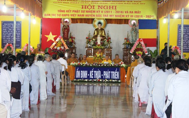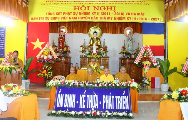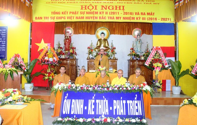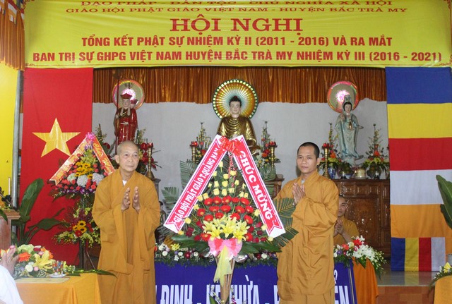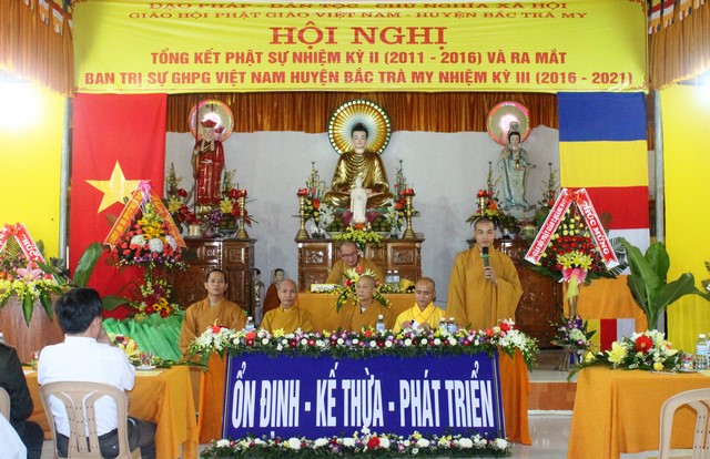 Phát biểu khai mạc hội nghị HT.Thích Thiện Thành, UV HĐTS, Phó BTS GHPGVN tỉnh, Trưởng BTS PG huyện Bắc Trà My cho biết, Bắc Trà My là một huyện trung du miền núi, Giáo hội được hình thành và hoạt động đã trải qua 2 nhiệm kỳ, toàn huyện chỉ có 1 ngôi chùa Bắc Trà My làm trụ sở VP Giáo hội huyện. Tuy cơ sở vật chất còn nhiều khó khăn nhưng nhận được sự chỉ đạo của BTS PG tỉnh, sự quan tâm giúp đỡ của chính quyền các cấp, Phật giáo huyện nhà nhiệm kỳ qua đã thành tựu được nhiều Phật sự quan trọng.