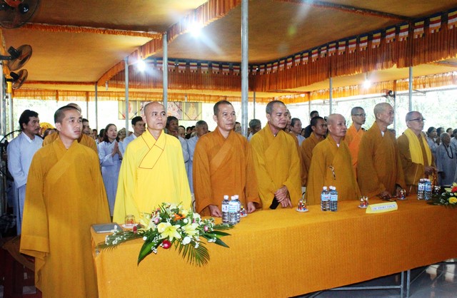 Mở đầu buổi hội nghị, toàn thể chư tôn đức Tăng Ni, quan khách và Phật tử cùng thực hiện nghi thức chào Quốc kỳ, Đạo kỳ tưởng niệm các bậc tiền bối hữu công.