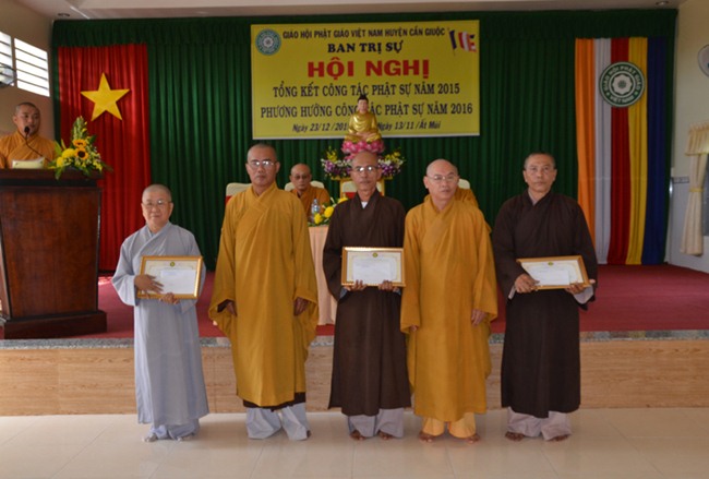 Qua báo cáo công tác Phật sự Phật Giáo Huyện năm 2015 vừa qua Ban trị sự đạt được nhiều thành tựu như: Tổ chức thành công Đại Lễ Phật Đản, khóa An Cư Kiết Hạ PL 2559, phát triển nhiều đạo tràng tu học cho Phật tử, tổ chức thuyết giảng truyền bá Chánh Pháp và tuyên truyền Pháp Luật đến với đời sống xã hội, tổ chức thành công nhiều khóa tu mùa hè dành cho thanh thiếu niên con em Phật tử, công tác an sinh xã hội xây nhà tình nghĩa, tình thương, khám- phát thuốc chữa bệnh- mổ mắt tặng quà cho người nghèo, bếp ăn từ thiện, phát học bổng cho học sinh nghèo.v.v… với