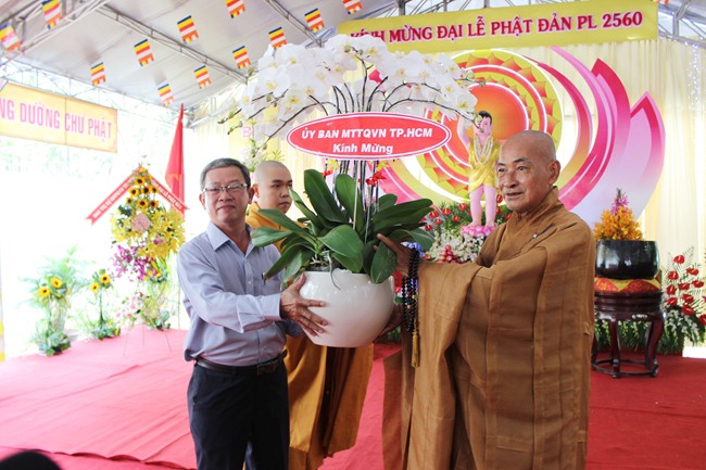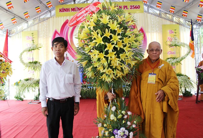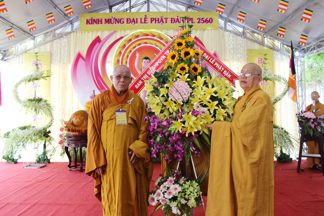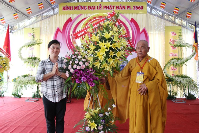 Tại buổi lễ, Ban tổ chức đã đón nhận những lẵng hoa tươi thắm của các cơ quan ban ngành gửi tới nhân mùa Phật Đản PL2560.