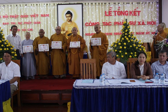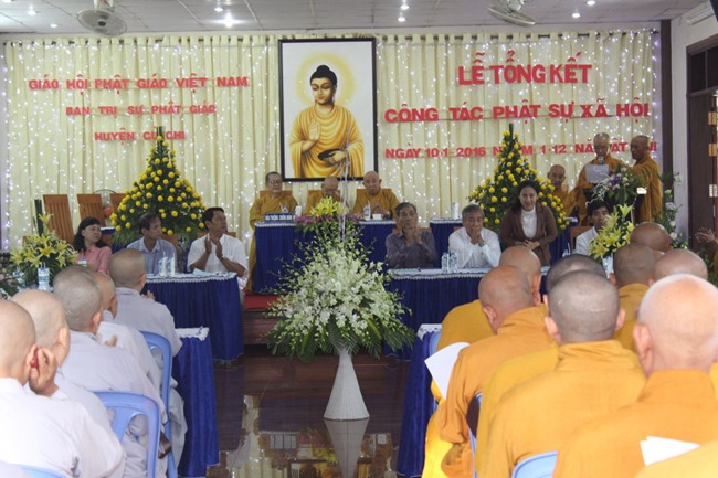 Quang lâm Đến chứng minh Lễ tổng kết có sự tham dự của chư Tôn Đức BTS TP.HCM, BTS GHPGVN huyện Củ Chi, chư tôn đức Tăng Ni, Phật tử các tự viện trên địa bàn huyện Củ Chi. HT.Thích Thiện Tánh, Phó Chủ tịch HĐTS, Phó ban Thường trực BTS GHPGVN TP.HCM đã tán thán về công tác từ thiện của huyện Củ Chi.