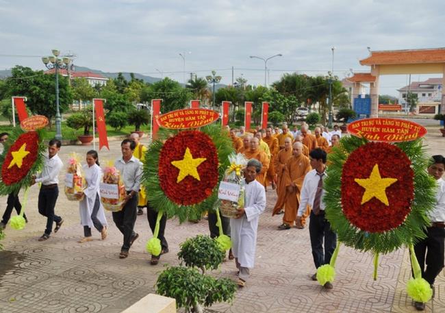 Gần hai tiếng đồng hồ khóa lễ đã diễn ra trong không khí trang nghiêm và khép lại trong niềm hoan hỹ. Trước đó vào sáng ngày 13 tháng 4 Ban trị sự Phật giáo huyện Hàm Tân củng tổ chức lễ tưởng niệm các anh linh chiến sỹ tại đài liệt sỹ huyện Hàm Tân, và tham quan khu nhà văn hóa huyện Hàm Tân vừa mới khánh thành củng trong mùa Phật đản.