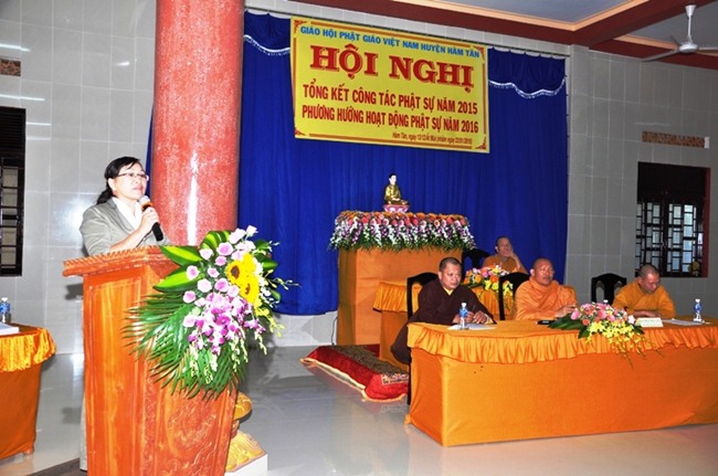 ĐĐ.Thích Giác Hiếu, Trưởng BTS PG huyện khai mạc buổi lễ. ĐĐ.Thích Thiện Thánh, Phó ban thường trực báo cáo tổng kết; ĐĐ.Thích Quảng Viên, Phó BTS đọc phương hướng hoạt động Phật sự năm 2016.