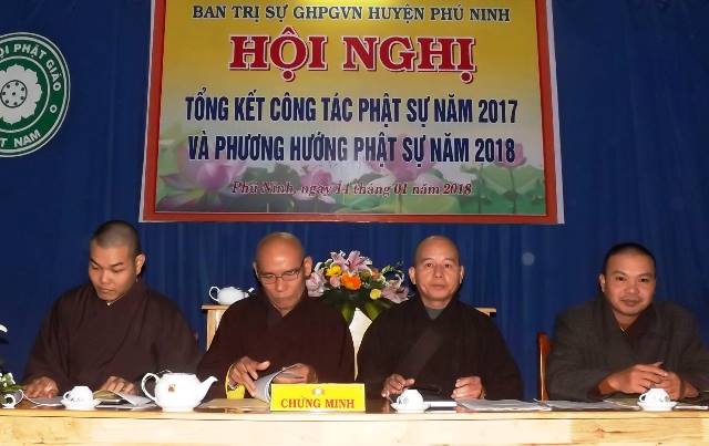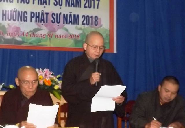 Sau lời phát biểu khai mạc của ĐĐ.Thích Viên Trừng, Trưởng BTS PG huyện Phú Ninh. ĐĐ.Thích Thanh Tịnh, Thư ký BTS PG huyện báo cáo tổng kết công tác Phật sự 2017 và trình bày phương hướng hoạt động 2018.