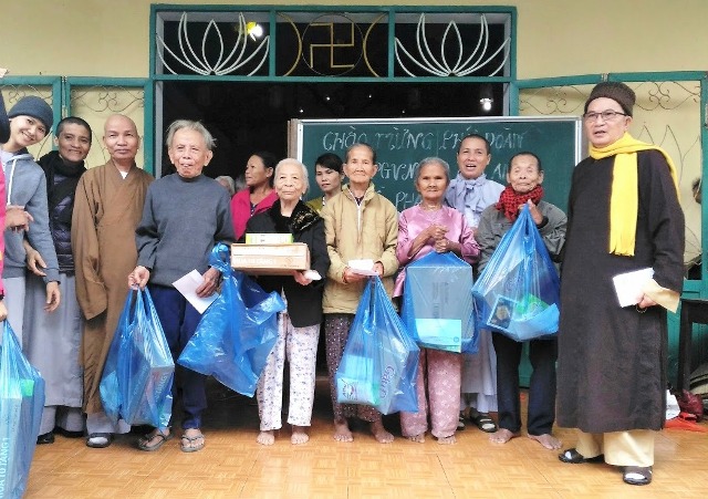 Tại buổi phát quà, HT.Thích Hạnh Niệm phát biểu nhấn mạnh những món quà tuy nhỏ nhưng đầy ắm nghĩa tình của Tăng Ni và Phật tử Tp.Hội An gửi đến bà con nơi đây với mong muốn bà con sẽ vượt qua những khó khăn trong cuộc sống hiện tại.