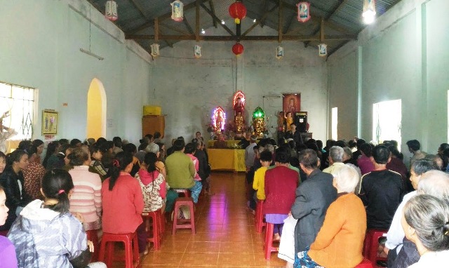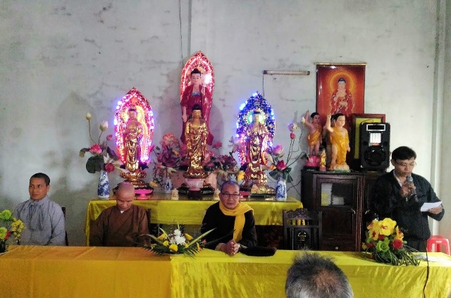 Đón tiếp phái đoàn có ĐĐ Thích Thắng Thiện, Trưởng BTS PG huyện Đại Lộc; ông Dương Văn Nam, Chủ tịch UBMTTQVN xã Đại Thạnh.
