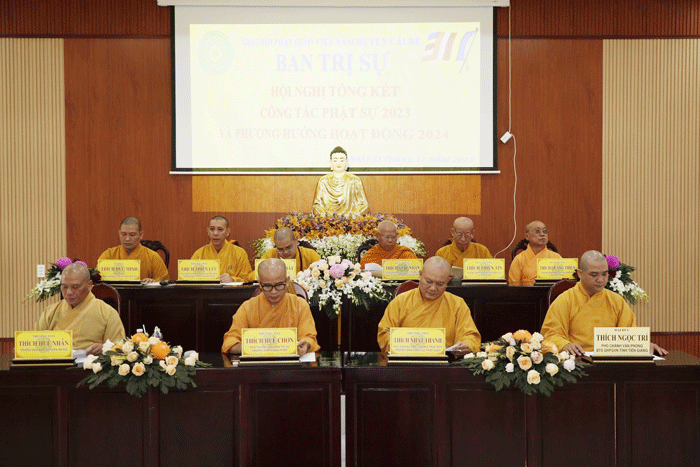 Sáng ngày 31/12/2022 (nhằm ngày 19/11 năm Quý Mão) Ban Trị sự GHPGVN huyện Cái Bè trọng thể tổ chức Hội nghị tổng kết công tác Phật sự năm 2023 và trình phương hướng hoạt động năm 2023, tại Văn phòng BTS – chùa Thiền Quang, xã Tân Thanh, huyện Cái Bè, tỉnh Tiền Giang.