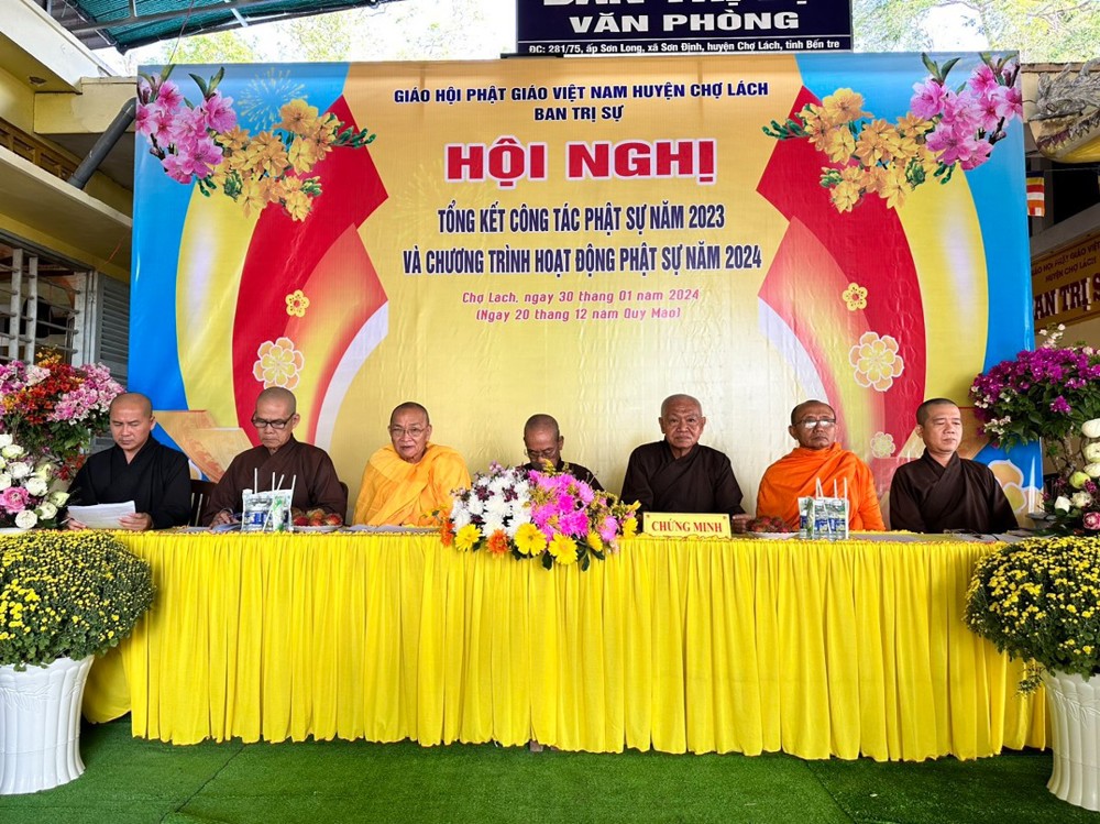 Sáng ngày 30/01/2024 Ban trị sự Phật giáo huyện Chợ Lách trang nghiêm tổ chức hội nghị tổng kết công tác Phật sự năm 2023, triển khai công tác Phật sự năm 2024, tại Văn Phòng BTS GHPGVN huyện Chợ Lách chùa Bửu Linh, ấp Sơn Long, xã Sơn Định, huyện Chợ Lách, tỉnh Bến Tre.