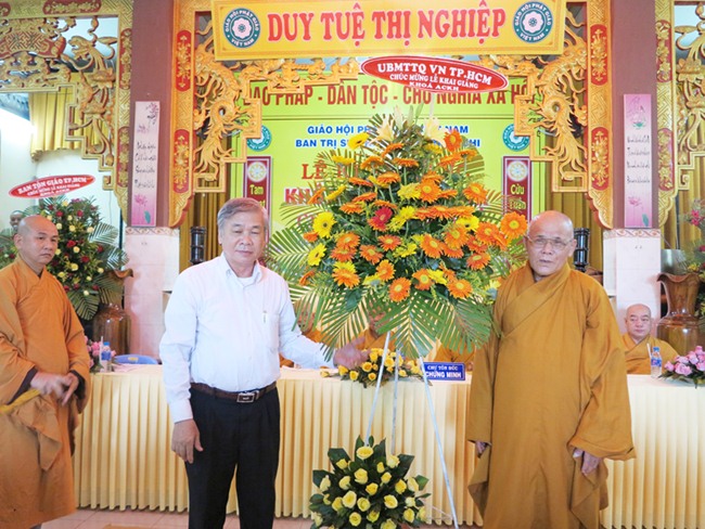Về phía chính quyền có ông Nguyễn Ngọc Phong, Phó chủ tịch UBMTTQVN TP.HCM; bà Trần Ngọc Thanh, Phó phòng Phật giáo – Ban Tôn giáo TP.HCM; ông Dương Văn Duyên, Trưởng ban Dân vận H.Củ Chi; bà Phạm Thị Thanh Hiền, Phó Chủ tịch UBND H.Củ Chi, cùng đại diện các cấp chính quyền sở tại.
