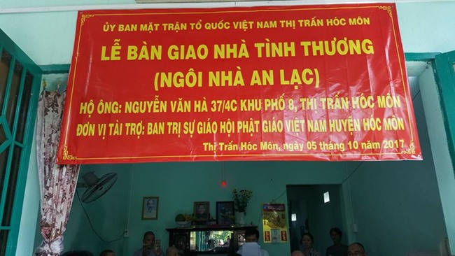 theo đó, Hộ ông Hà Là hộ nghèo có hoàn cảnh khó khăn tại khu phố 8. Thị trấn Hóc Môn. Ngôi nhà trị giá 50.000. 000 đồng. (Năm mươi triệu đồng) do Quỹ Chương trình Ngôi nhà An lạc thuộc Ban Trị sự GHPGVN huyện Hóc Môn và Ni sư Thích nữ Tường Hạnh. Trụ trì chùa Thiền Lâm. Xã Thới Tam Thôn. Sư cô Thích nữ Quảng Nhuận. Trụ trì chùa Ngọc Trung. Xã Tân Hiệp tài trợ.