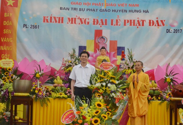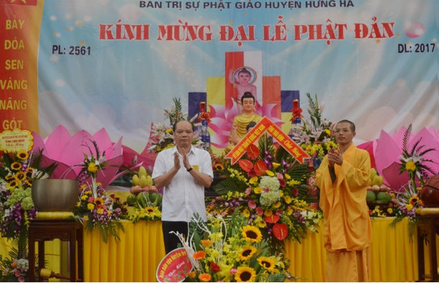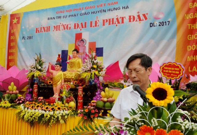 Trong không khí thắm tình đạo vị, gắn bó giữa đạo và đời, ông Đỗ Văn Bình, Phó Chủ tịch UBND huyện thay mặt cho huyện ủy, HĐND, UBND, UBMTTQVN huyện có lời phát biểu động viên Tăng, Ni, Phật tử trong huyện sống tốt đời đẹp đạo, góp phần xây dựng chủ nghĩa xã hội và tham gia phong trào xây dựng nông thôn mới.
