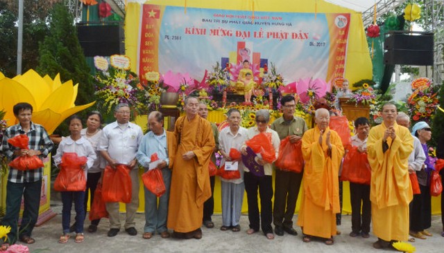 Nhân dịp Đại lễ, BTS Phật giáo huyện và chùa Phúc Long – làng Tịnh Xuyên đã trao 150 xuất quà cho các đối tượng là người tàn tật, nạn nhân da cam, học sinh nghèo vượt khó của xã Hồng Minh. Kết thúc buổi lễ, chư tôn đức, quý vị đại biểu đã dâng hương và cử hành nghi thức tắm Phật trong tinh thần trang nghiêm, thành kính, hòa hợp trong ngày Đản sinh của đức Bản sư Thích Ca, đồng thời thả chim bồ câu cầu nguyện cho quốc thái dân an, hòa bình an lạc.