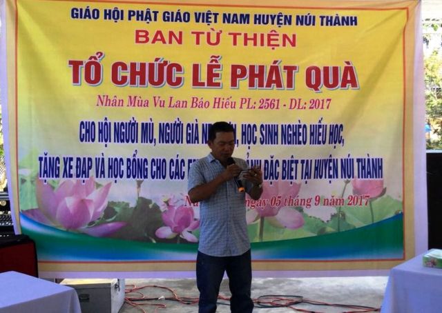Tại buổi phát quà, SC.Thích nữ Minh Thái, Trưởng ban Từ thiện – xã hội PG huyện Núi Thành, đã chia sẻ, động viên, thăm hỏi, khích lệ tinh thần bà con có hoàn cảnh khó khăn, đặc biệt người mù trong huyện, cũng như mong muốn các em học sinh trong năm học mới cố gắng học tập tốt để sau này làm người tốt giúp ích cho đời…