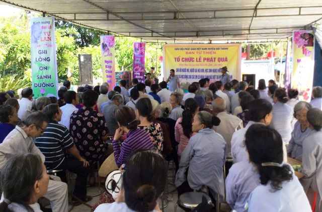 Dịp này, BTC cũng đã tổ chức chương trình cài hoa hồng cho người mù, người già neo đơn nhân dịp lễ Vu lan.