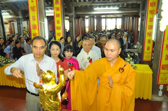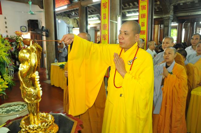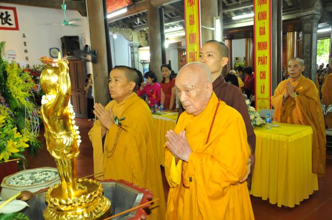 Quang lâm chứng minh buổi lễ có: Trưởng lão Hòa thượng Thích Thanh Đàm – Phó Pháp Chủ HĐCM GHPGVN; Hòa thượng Thích Thanh Chính – Ủy viên thường trực HĐTS GHPGVN, Phó trưởng Ban thường trực BTS GHPGVN thành phố Hà Nội; Thượng tọa Thích Minh Trí – Ủy viên HĐTS GHPGVN, Trưởng Ban thông tin truyền thông GHPGVN thành phố Hà Nội; Thượng tọa Thích Minh Tín – Ủy viên HĐTS GHPGVN, Trưởng Ban giáo dục Phật giáo, Hiệu trưởng trường Trung cấp Phật học thành phố Hà Nội, Trưởng BTS GHPGVN thị xã Sơn Tây; Thượng tọa Thích Tâm Hoan – Ủy viên HĐTS GHPGVN, Chánh văn phòng BTS GHPGVN thành phố Hà Nội, Trưởng BTS GHPGVN quận Ba Đình; Thượng tọa Thích Đức Thường – Ủy viên HĐTS GHPGVN, Trưởng Ban Pháp chế BTS GHPGVN thành phố Hà Nội, Trưởng BTS GHPGVN huyện Thường Tín; Thượng tọa Thích Trí Như – Ủy viên BTS GHPGVN thành phố Hà Nội, Trưởng BTS GHPGVN huyện Thanh Trì, Trưởng Ban tổ chức đại lễ cùng chư tôn đức Tăng Ni trong BTS GHPGVN huyện Thanh Trì và đại diện các vùng lân cận.