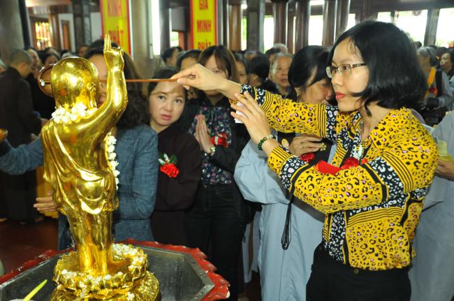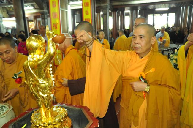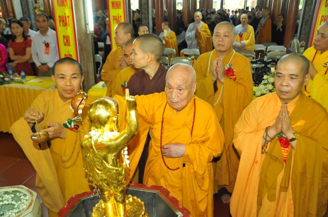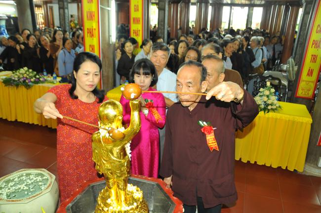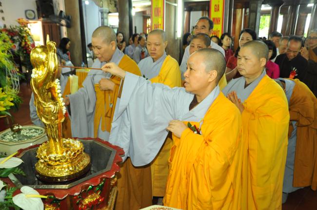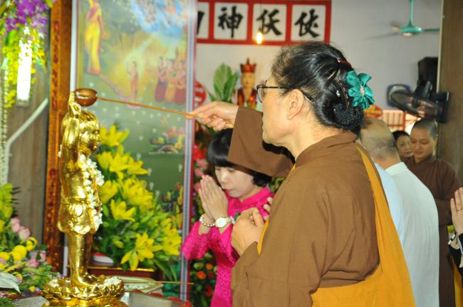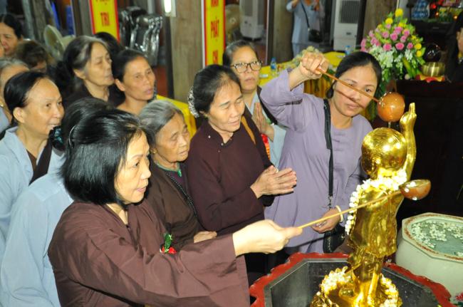 Cuối cùng, chư tôn đức chứng minh cùng toàn thể đại chúng đã thực hiện nghi thức Phật đản truyền thống như niêm hương bạch Phật, tụng kinh Phật đản và thực hiện nghi thức tắm Phật, khép lại buổi lễ thành tựu viên mãn và tràn đầy niềm hỷ lạc của những người con Phật hướng về kỷ niệm ngày đản sinh của Đức Từ Phụ.