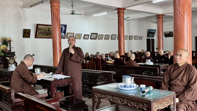 Tiếp nối sau đó, chư Tôn đức thông qua Thông bạch Phật Đản Phật lịch 2568 của Hội Đồng Trị sự GHPGVN, chư tôn đức Thường trực đã thảo luận và thực hiện chương trình Phật Đản gọn nhẹ, ít tốn kém nhưng trang nghiêm, để dâng lên cúng dàng Đức Phật đản sinh theo hướng dẫn Thông tư của Giáo hội Trung ương.