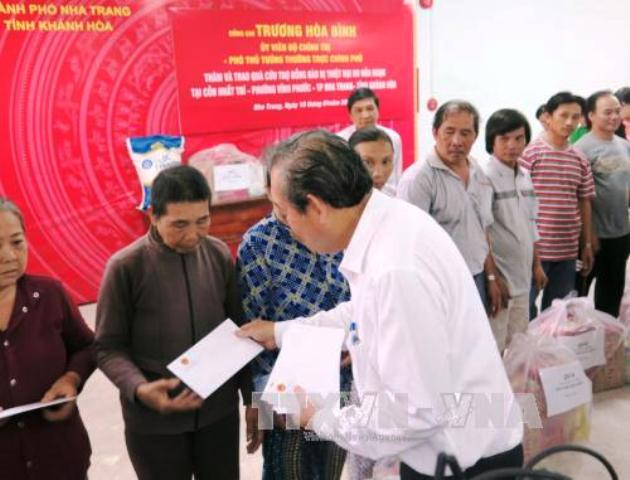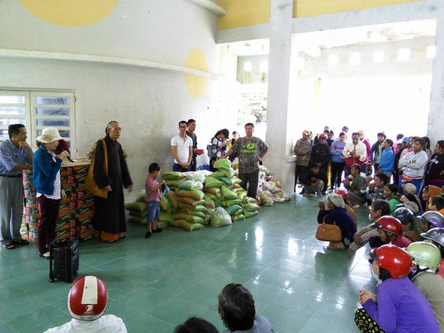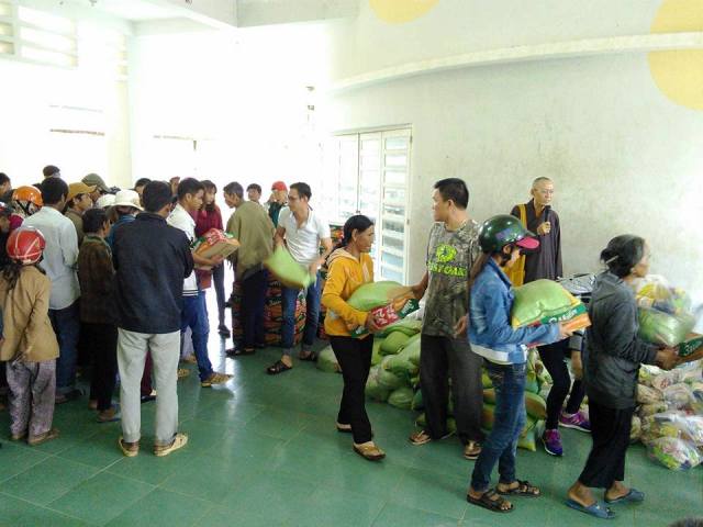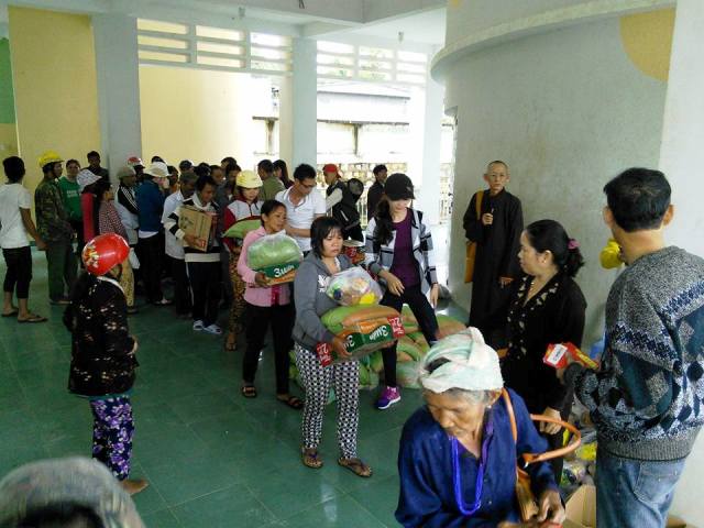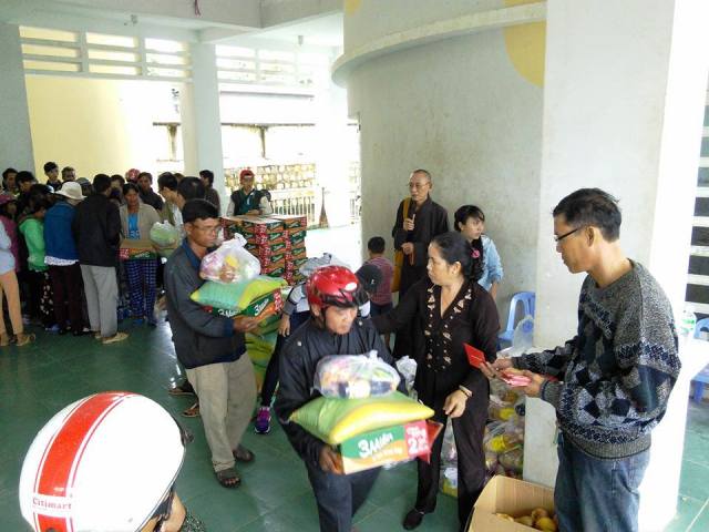 Hòa thượng Thích Quảng Thiện – Phó Trưởng BTS, Trưởng Ban Từ thiện xã hội GHPGVN tỉnh Khánh Hòa chia sẻ: “Cận Tết mà nhà bị cháy rụi, vừa mất tiền của, vừa sa sút tinh thần. Sự mất mát của bà con là quá lớn, mong những suất hỗ trợ hôm nay phần nào giúp mọi người sớm ổn định cuộc sống. Trong thời gian tới, chúng tôi sẽ tiếp tục vận động các tăng ni, phật tử, nhà hảo tâm quyên góp để giúp đỡ bà con sớm vượt qua được tai ương”. Không những trao tiền mặt, Ban Từ thiện xã hội GHPGVN tỉnh Khánh Hòa còn gửi đến người dân những chiếc bánh chưng, bánh Tét, bánh kẹo, mứt Tết để người dân chuẩn bị cúng tổ tiên đón giao thừa.