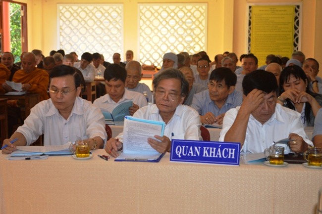 Hội nghị đã nghe ý kiến đóng góp của đại biểu các Ban ngành của tỉnh và Ban Trị sự GHPGVN các huyện thị, thành phố, trong tỉnh.