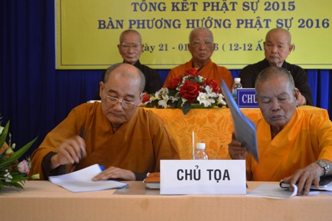 HT.Thích Nguyên Quang- Phó BTS kiêm Chánh Thư ký thông qua báo cáo Tổng kết Phật sự Khánh Hòa năm 2015 và phương hướng hoạt động năm 2016. Năm qua, GHPGVN tỉnh Khánh Hòa đã phát triển phật sự tại hai huyện miền núi Khánh Sơn và Khánh Vĩnh, Đặt đá khởi công xây dựng chùa Phật giáo Khánh Vĩnh.