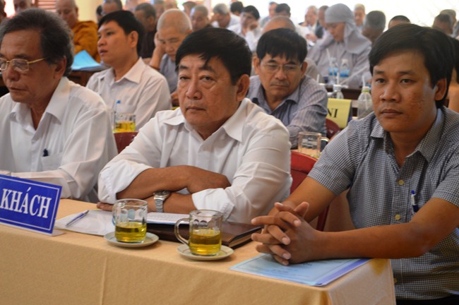 Ông Bùi Hữu Dinh, Trưởng Ban Tôn giáo tỉnh Khánh Hòa phát biểu ghi nhận, đánh giá cao các hoạt động Phật sự năm qua của GHPGVN tỉnh Khánh Hòa, nhất là hoạt động từ thiện xã hội, phát triển phật sự tại hai huyện miền núi Khánh Sơn và Khánh Vĩnh, cử qúy Thầy ra trụ trì 6 chùa tại huyện đảo Trường Sa . Ông đã trả lời những kiến nghị mà đại biểu Hội nghị đã phát biểu.
