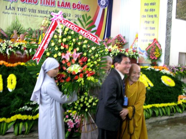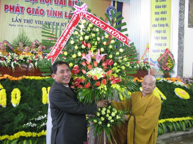 Hôm nay, trong bầu không khí trang nghiêm, đoàn kết, hòa hợp, thanh tịnh, toàn thể Tăng Ni, phật tử tỉnh Lâm Đồng hân hoan chào đón, mừng sự kiện trọng đại: Đại hội Đại biểu Phật giáo tỉnh Lâm Đồng lần thứ VIII, nhiệm kỳ (2012-2017) được long trọng tổ chức. Thay mặt Tỉnh ủy, Hội đồng nhân dân, Uỷ ban nhân dân, Uỷ ban Mặt trận Tổ quốc Việt Nam tỉnh Lâm Đồng tôi trân trọng gửi đến quý vị đại biểu, các vị Hòa thượng, Thượng tọa, Ni trưởng, Ni sư, các vị Đại đức, Tăng Ni, cư sỹ, phật tử về dự Đại hội lời chúc sức khỏe an lạc và đạt được nhiều thành tựu trong hoạt động Phật sự. Chúc quý vị đại biểu và đồng bào phật tử tỉnh nhà mạnh khỏe, hạnh phúc. Chúc Đại hội thành công tốt đẹp.