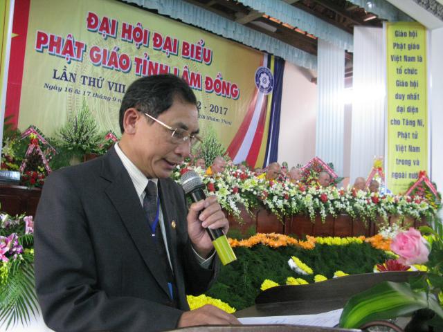 Một lần nữa, thay mặt Tỉnh ủy, Hội đồng Nhân dân, Ủy ban Nhân dân, Ủy ban Mặt trận Tổ quốc Việt Nam tỉnh Lâm Đồng, kính chúc các vị khách quý, quý Hòa thượng, quý tăng ni, phật tử và toàn thể Đại hội sức khỏe, tâm thường an lạc, phật sự viên thành.