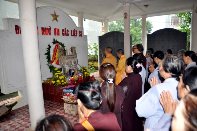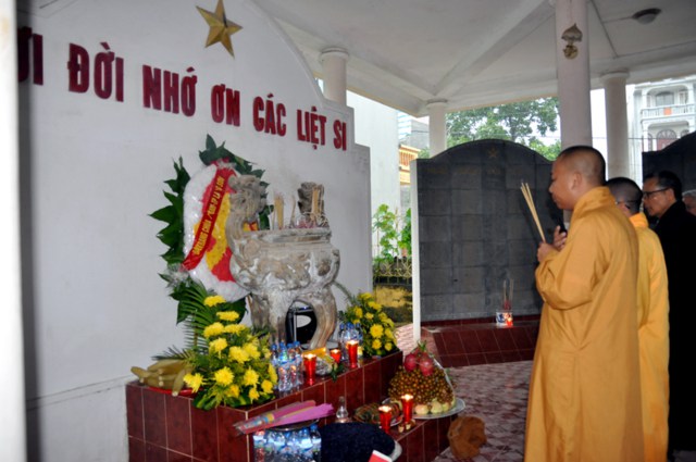 Tại nghĩa trang Liệt sĩ. Đoàn đã dâng hương, hoa tưởng niệm và tụng kinh cầu siêu cho các Liệt sĩ đã hy sinh cho độc lập tự do của dân tộc; vòng hoa của đoàn mang dòng chữ “Đời đời nhớ ơn các anh hùng liệt sĩ”.