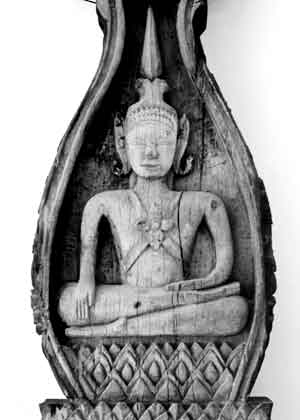 Tượng Phật ngồi trong lá nhĩ, nghệ thuật Khmer, chất liệu gỗ
