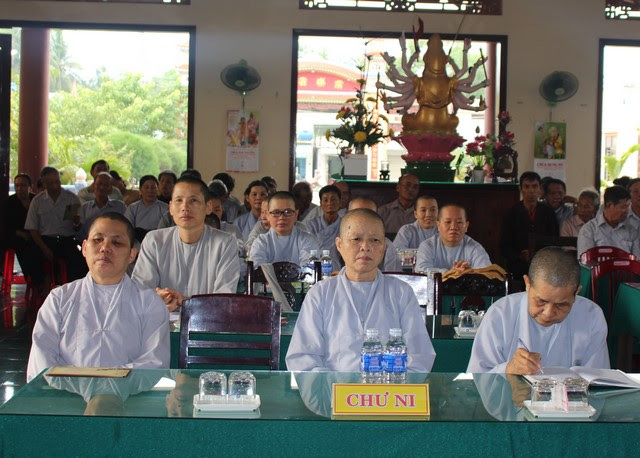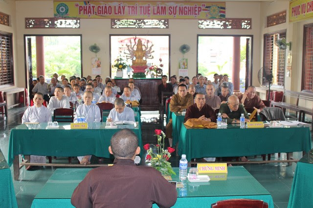 ĐĐ.Thích Hạnh Thông, UV BTS PG tỉnh, Trưởng BTS PG huyện Núi Thành, chủ trì buổi họp; cùng chư tôn đức thành viên BTS PG huyện, chư tăng ni trụ trì, quý phật tử Ban hộ tự, Ban hộ trì Tam Bảo các chùa trong toàn huyện tham dự.