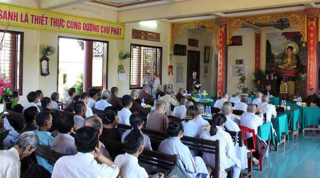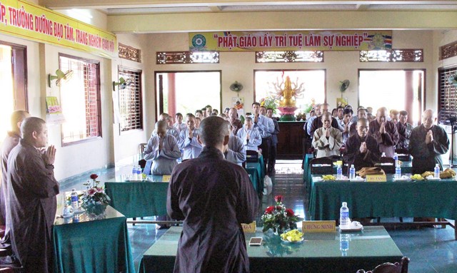 ĐĐ.Thích Hạnh Thông, UV BTS PG tỉnh, Trưởng BTS PG huyện Núi Thành, chủ tọa cuộc họp; cùng chư tôn đức thành viên BTS PG huyện; chư tôn đức Tăng Ni trụ trì các cơ sở và Phật tử tham dự.