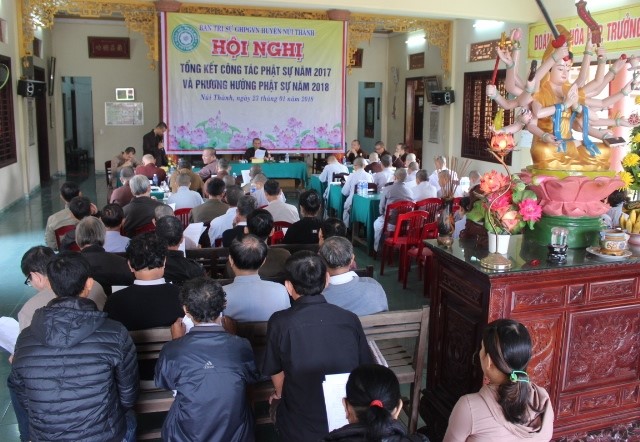 ĐĐ.Thích Hạnh Thông, UV BTS PG tỉnh Quảng Nam, Trưởng BTS PG huyện Núi Thành, chủ tọa hội nghị cùng Chư tôn đức BTS PG huyện, các ban ngành trực thuộc, chư Tăng Ni trụ trì, Phật tử đại diện Ban hộ tự, Ban hộ trì Tam bảo các cơ sở trong toàn huyện tham dự.