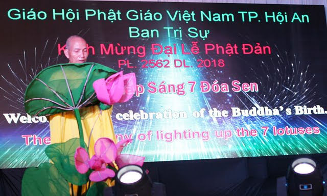 Phát biểu khai mạc tại buổi lễ, TT.Thích Hạnh Nhẫn, Phó BTS PG tỉnh, Trưởng BTS PG TP.Hội An, Trưởng BTC đại lễ cho biết, năm nay, Phật giáo thành phố Hội An tưng bừng đón chào ngày xuất thế của Đấng Từ phụ nhân thiên, với nhiều chương trình hoạt động được tổ chức xuyên suốt trong tuần lễ như: thắp sáng 7 đóa sen trên sông Hoài, lễ Rước Phật, diễu hành xe đạp, văn nghệ, hoa đăng và rước cộ hoa tham gia đêm phố cổ… thể hiện tinh thần đạo đời hòa hợp, mang đậm sắc thái của thành phố du lịch Hội An – Di sản Văn hóa thế giới.