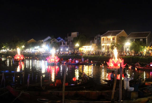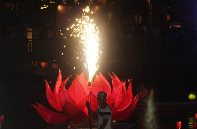 Tại buổi lễ, chư tôn đức và đại diện chính quyền lần lượt bấm nút thắp sáng 7 đóa sen với 9 rồng phun nước mừng Phật đản sanh, mở đầu cho tuần lễ Phật đản tại phố cổ Hội An năm nay trong niềm hân hoan của tất cả mọi người con Phật.