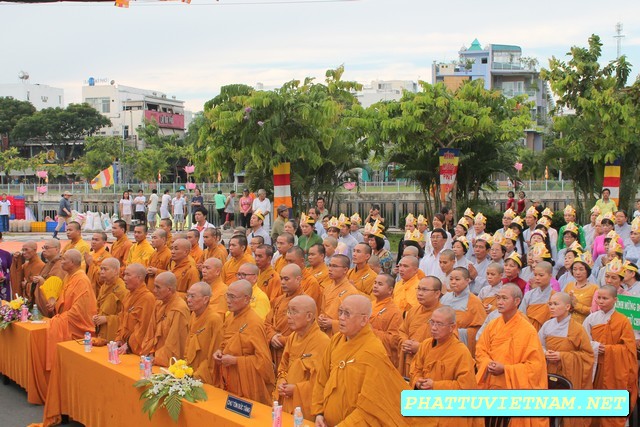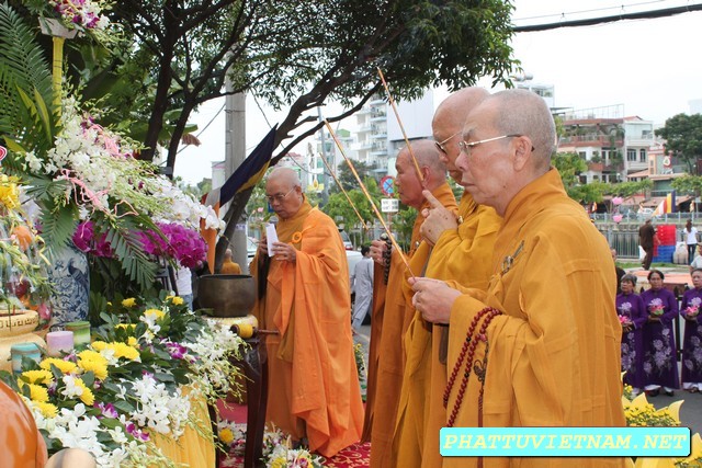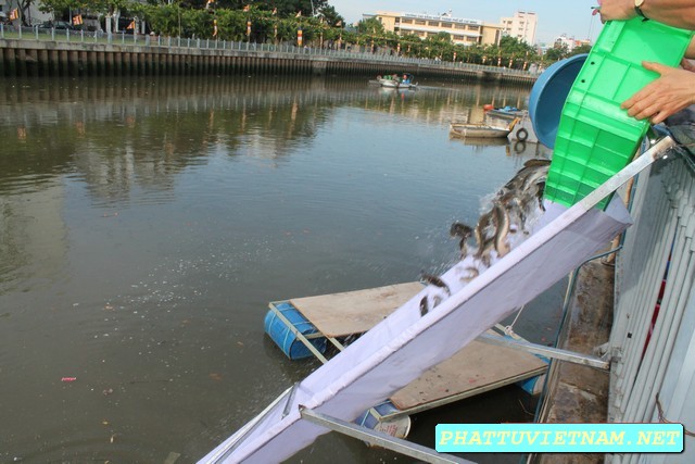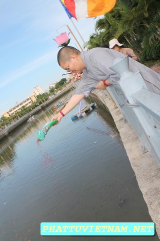Sau nghi thức niêm hương, bạch Phật – khai Kinh, chư tôn đức Tăng Ni cùng chính quyền các cấp và Phật tử huân tập tại lan can kênh Nhiêu Lộc thực hiện phóng sinh. Qua nghi thức phóng sinh vào ngày chào mừng đại lễ Phật Đản, chúng tôi mong rằng nhân dân thành phố mang tên Bác, luôn mở rộng tâm từ cho cá ăn để tạo nền văn hóa tốt và nghĩa cử đẹp tác động đến các bé thơ biết yêu thương muôn loài.